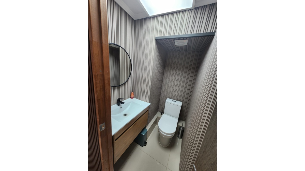 Cuenta con un multiespacio, cocina equipada con los electrodomésticos necesarios y dos baños-